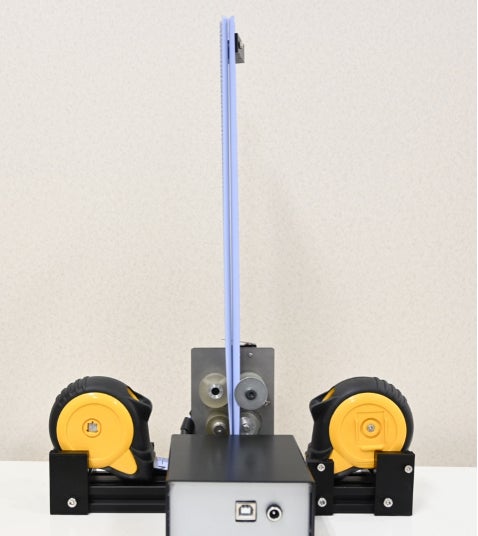 特許取得済みの巻尺機構を搭載し、コンパクトな筐体から大きな伸長が可能なアクチュエータです。筐体に金属テープを収め、金属テープを2枚重ね合わせて送り出したり収納したりすることで、4mの高さまで直立が可能となります。金属テープを巻き取ると小さな筐体の中に収納されます。