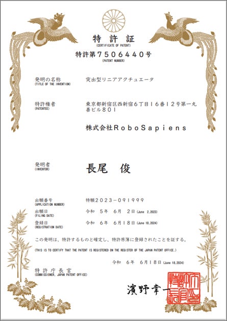 RoboSapiensは2020年7月3日に設立した会社で、設立4年を迎えたばかりのスタートアップですが、この特許が既に5つ目となります。