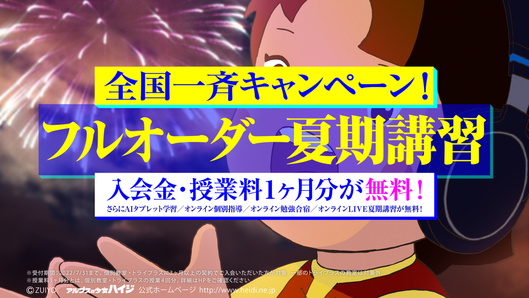 全国No.1の完全マンツーマン指導「個別教室のトライ」 、1対2の個別指導「トライプラス」にて 2022年7月31日(日)まで申込受付