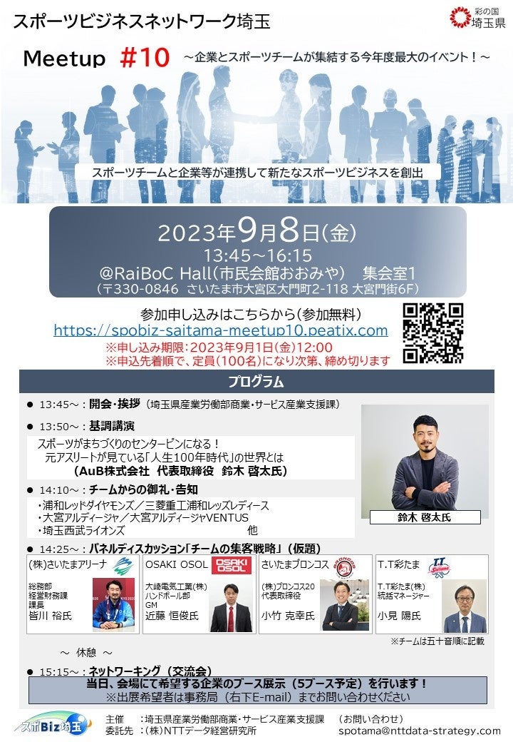 鈴木啓太氏登壇!埼玉県内のスポーツチームと企業が集結するネットワーキングイベントを開催します!
