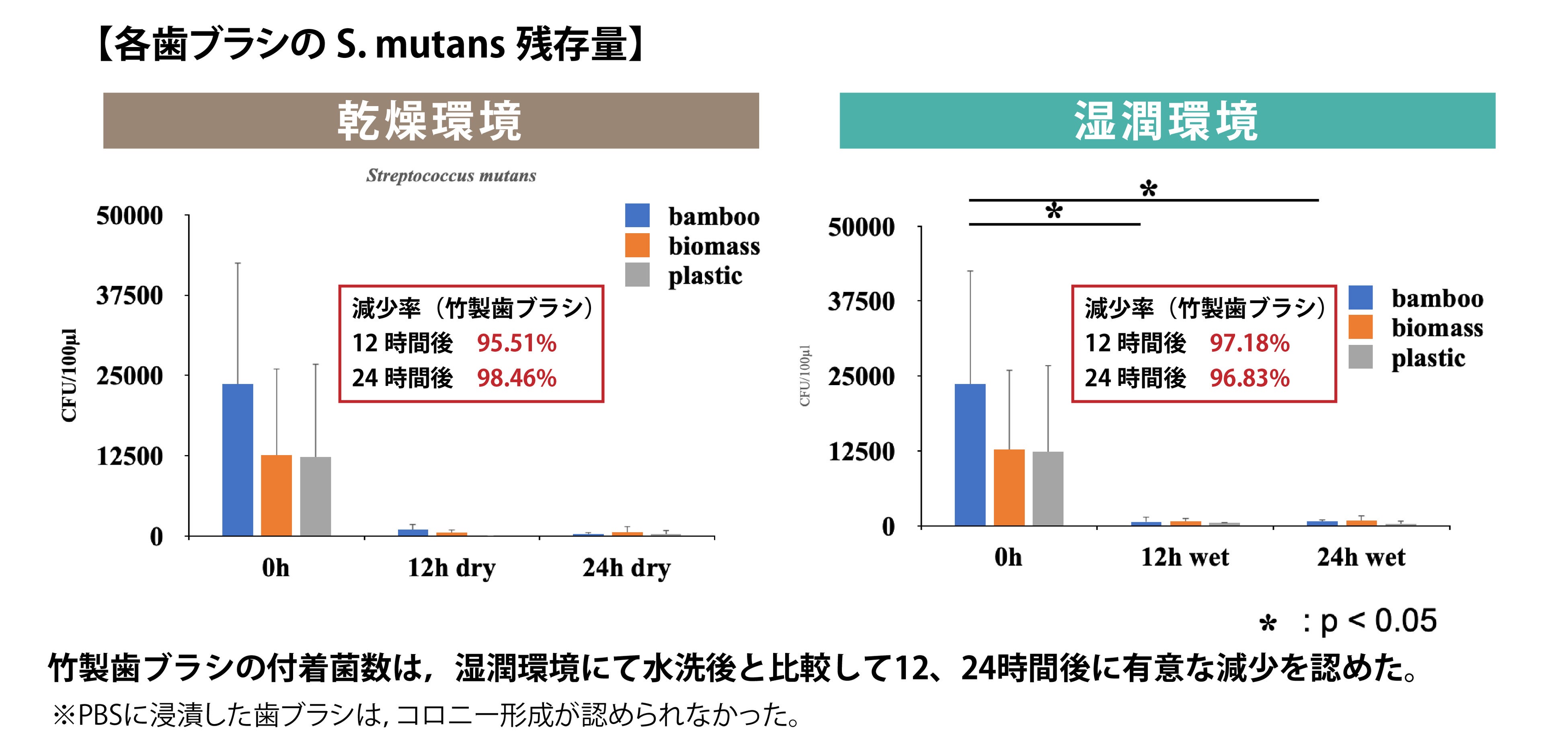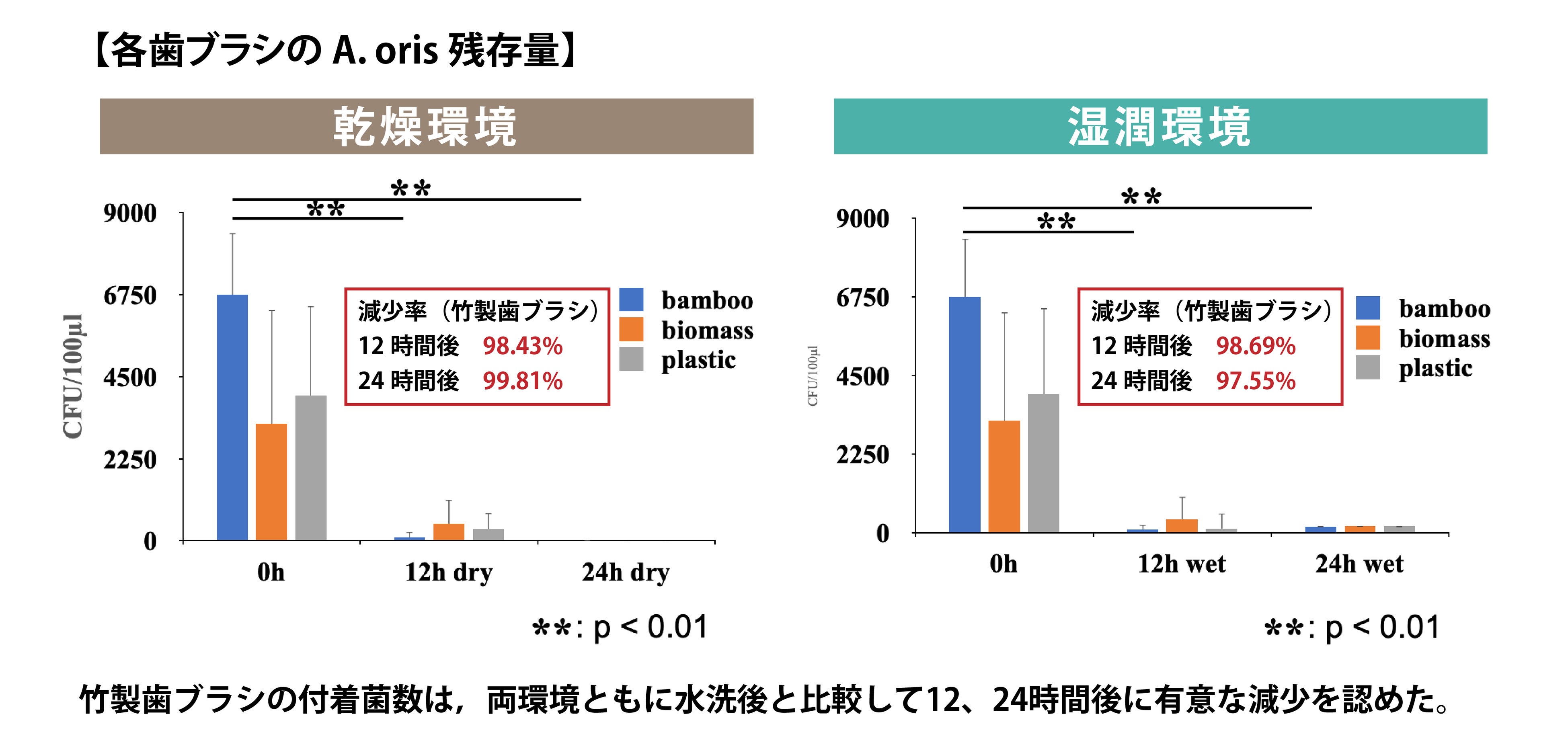 今回の実験により、「BambooOne」の竹歯ブラシはプラスチック等の歯ブラシと同様の清潔さを保つことが科学的に証明された。