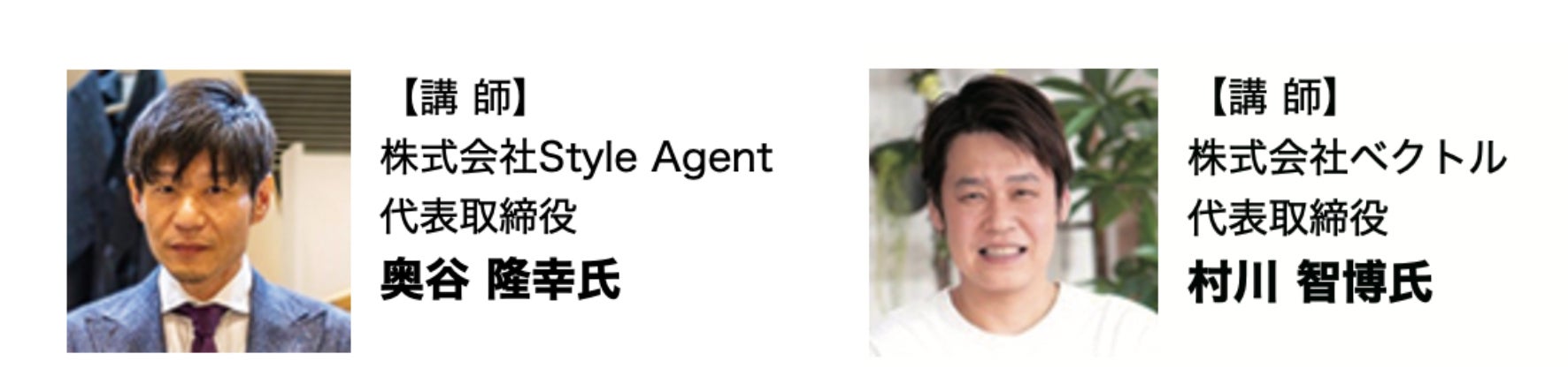 会場にて、ReP.エグゼクティブプロデューサー奥谷隆幸氏(株式会社Style Agent 代表取締役)とCoプロデューサー村川智博氏(株式会社ベクトル代表取締役)による特別講演が開催されます。テーマは「企業が“サステナブル時代”に貢献するための新たな取り組み」と題して、サステナブルを通じてかかわる人々に「新たな気づきを」提供することで、かかわるすべての人々が、循環型社会の一翼となり、持続可能な社会の実現に貢献していくことができるようになることを目指し、事業を展開しています。個ではできないような取り組みも、仲間を増やすことで実現可能となるような横のつながりを極大化させ、地球環境を意識した取り組みを実例をもとにトークセッションをおこないます。