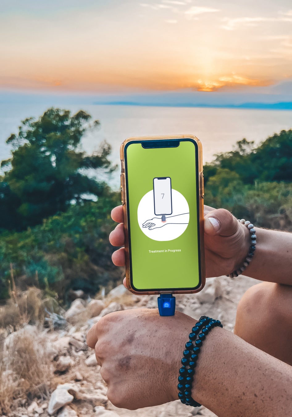 スマホにUSBデバイスを差し込み、アプリを使用して皮膚に4〜10秒間当てるだけでOK。従来の化学物質を含む薬品は不要。