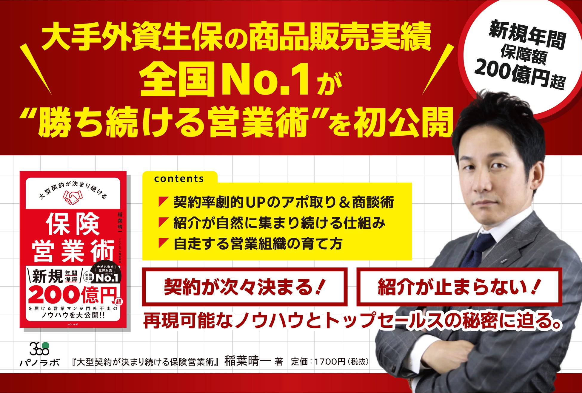 株式会社フォーウェイ(本社:東京都渋谷区、代表取締役:仲山洋平)は、グループ出版社パノラボより、ハレノヒハレ株式会社代表取締役・稲葉晴一氏による新刊『大型契約が決まり続ける保険営業術』を2025年10月27日に発売いたします。