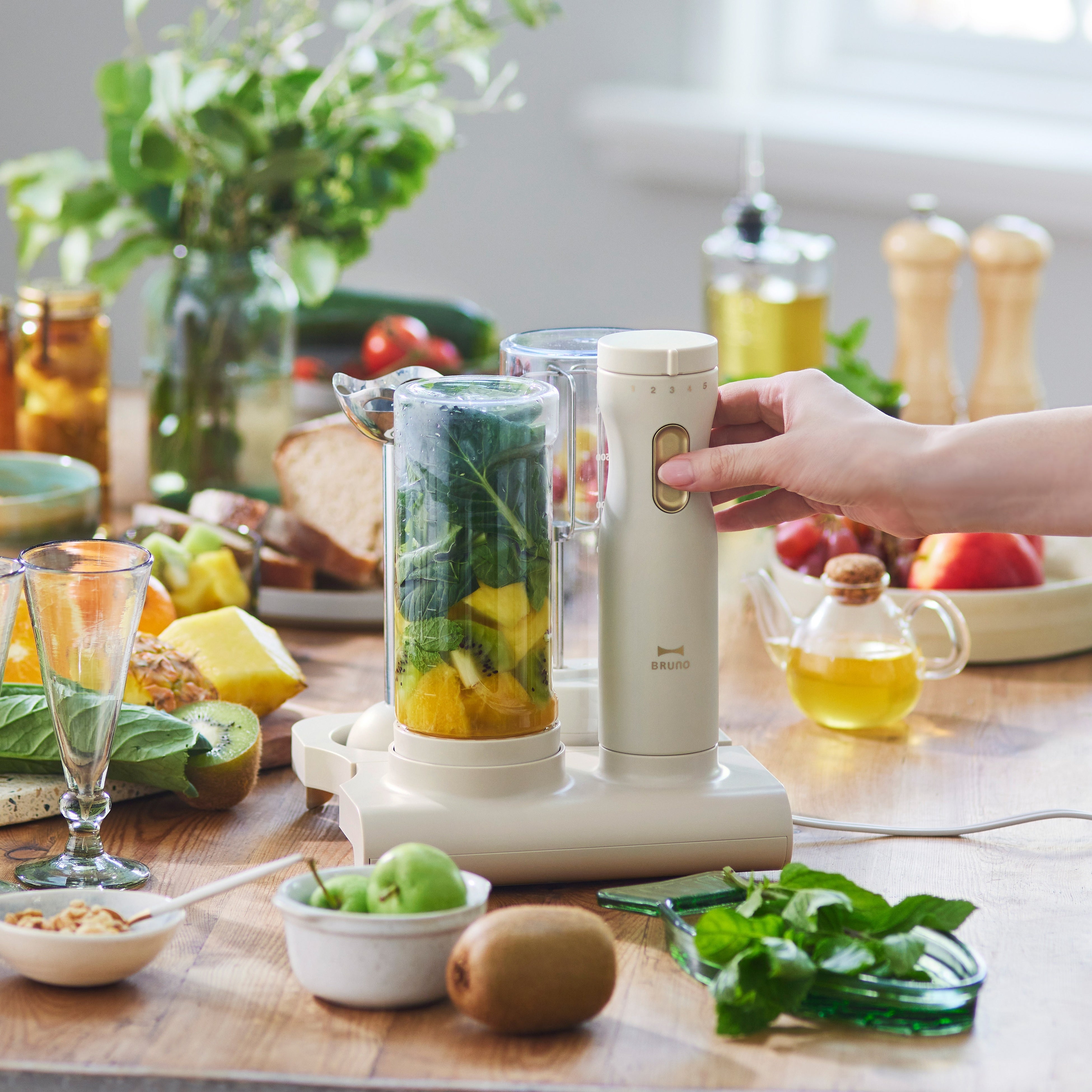 インテリア雑貨およびライフスタイル商品の企画/開発/販売を行うBRUNO 株式会社(本社:東京都港区、代表:森 正人)は、大人を愉しむライフスタイルブランド「BRUNO (ブルーノ)」が展開している「 BRUNO crassy+(ブルーノ クラッシィ)」シリーズより、1台7役の多機能ブレンダー「スタンドハンディブレンダー」を9月16日に発売いたします。