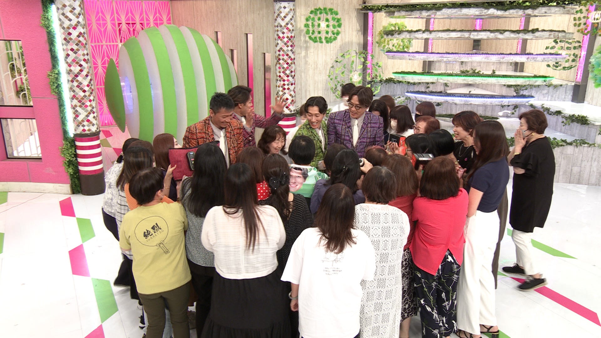 スタジオではマダムたちが商品に殺到!純烈がもみくちゃになるほどの大盛況だった。