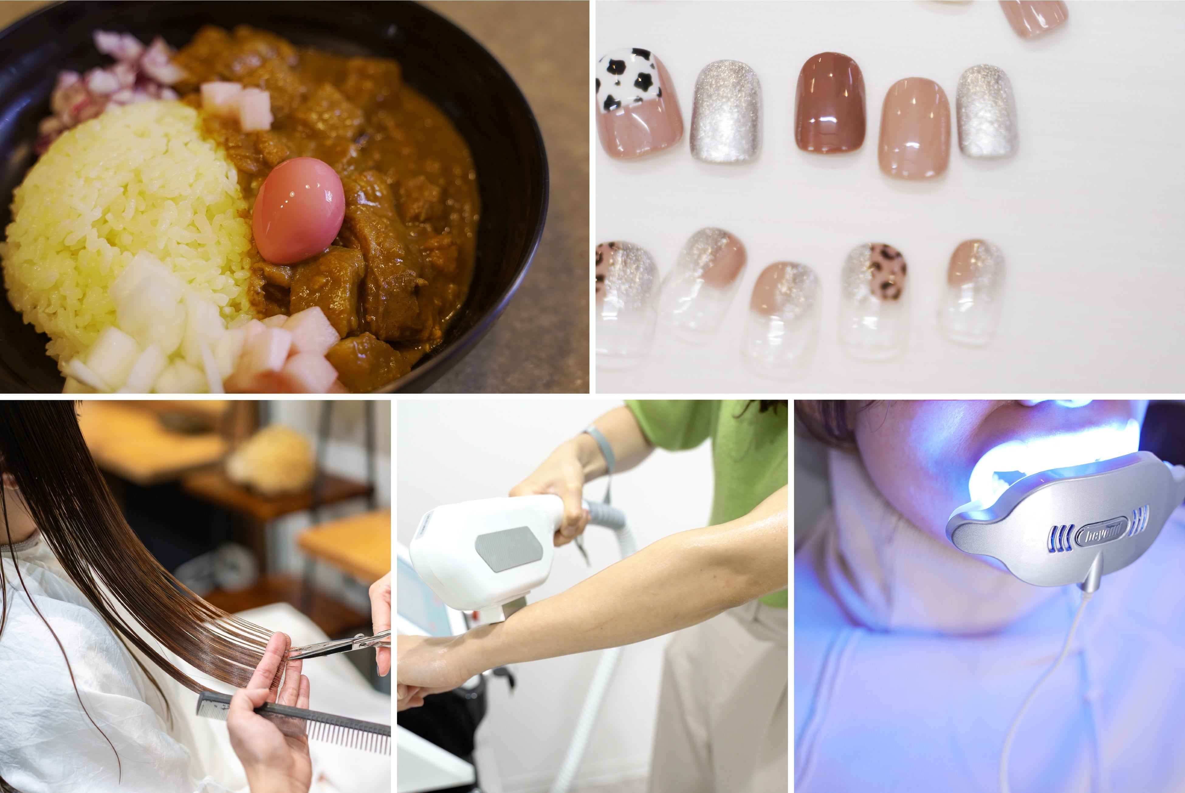 また、このたび一般利用の開始を記念して、近畿大学の学生起業家 西奈槻氏とのコラボレーションによる「野菜が摂れる麻婆カレー ~近大をすすらんか。監修~」を新メニューとしてラインアップ。野菜もしっかり摂れる健康的かつお腹にも大満足なカレーをご用意しました。その他、スパイスの効いた大根カレーや、美容室(カット、カラー)、ネイルサロン(ワンカラー)や使い放題のセルフ脱毛、セルフホワイトニングをどなたでもご利用いただけます。また、INOVE+は、完全予約制となっており、混み合うことなく施術時も安心してご利用いただけます(カレーのみ予約の必要なし)。