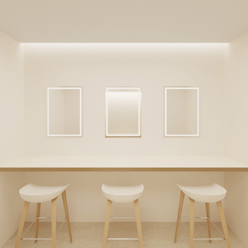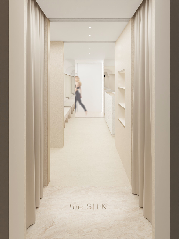 カラーパレットも既存店を踏襲しつつ、各所ディテールに、the SILKのために作成したオリジナルカラーの金物を細く入れ込むことにより、全体的に同色でまとめている空間に繊細ながらも上品で締まった印象を加えました。