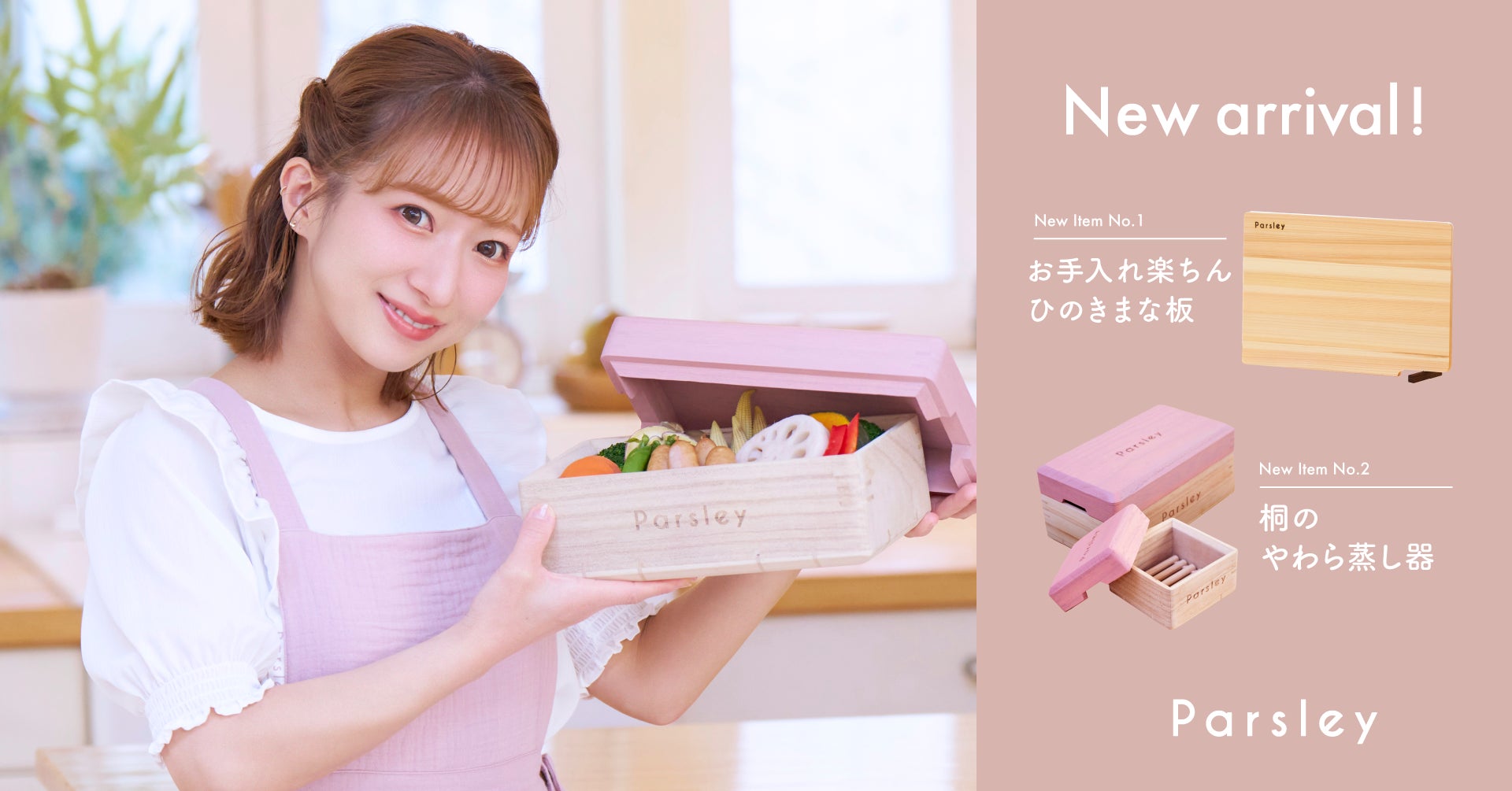 辻希美プロデュース「Parsley」から、木のぬくもりと機能美を両立した、まな板と蒸し器が3月27日より販売スタート