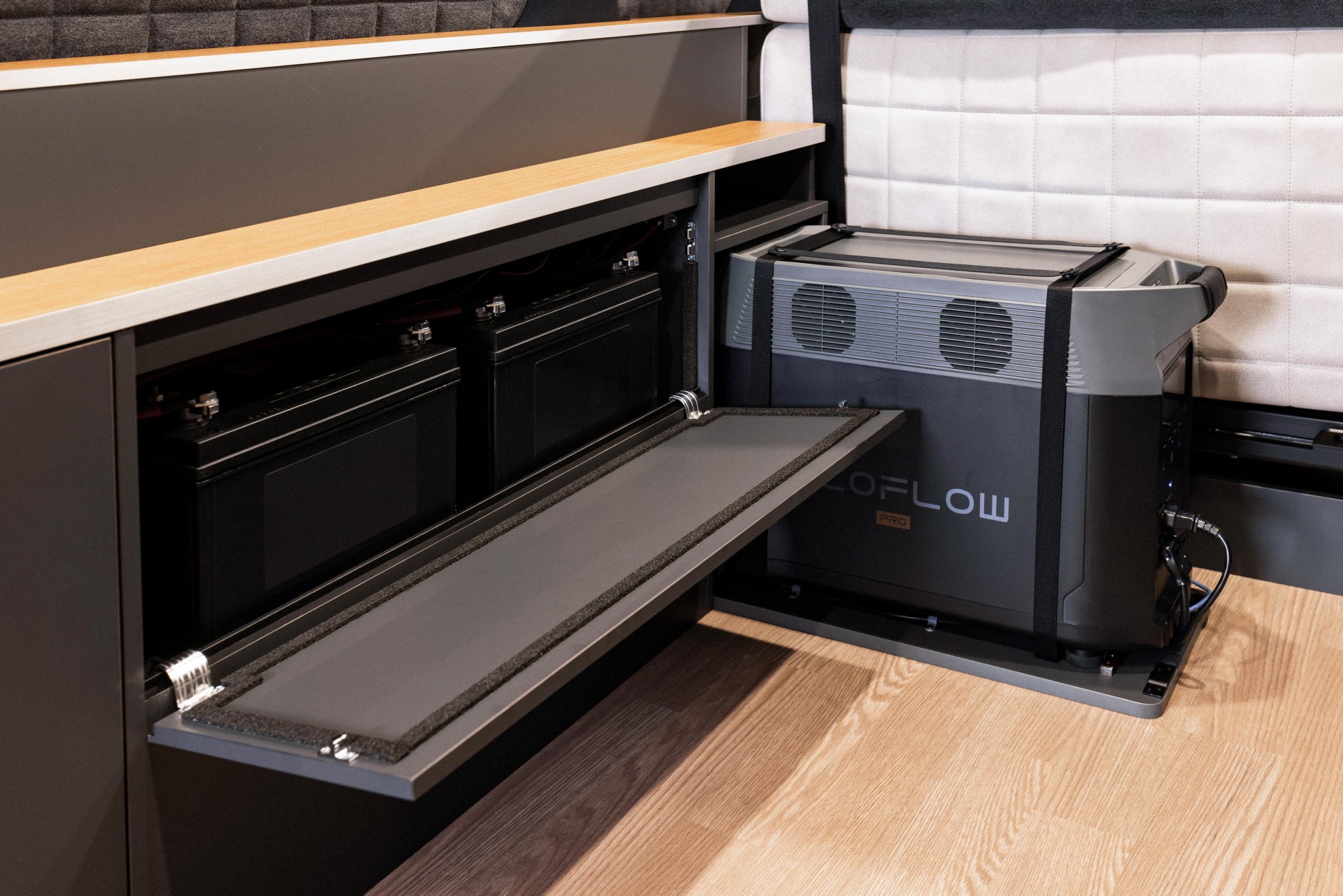 Cabelliaでは、昨今で性能が急上昇し多種多様な現場で登場するようになったポータブルバッテリーとキャンピングカーでは定番のサブバッテリーシステムを融合したハイブリットシステムを採用しました。