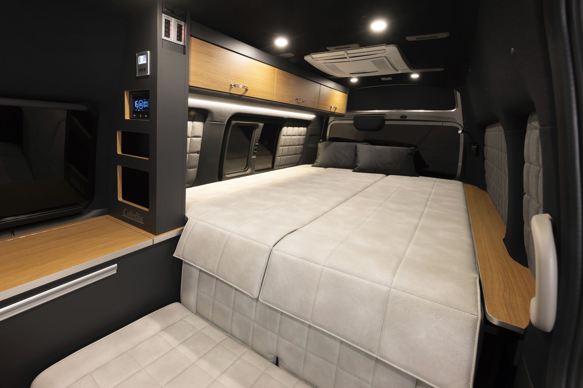 Cabelliaは、車両前方のリビングルーム、後方のベッドルームの2つの独立した空間で構成されます。内装はシンプルで高級感のあるホテルライクな空間を演出しました。