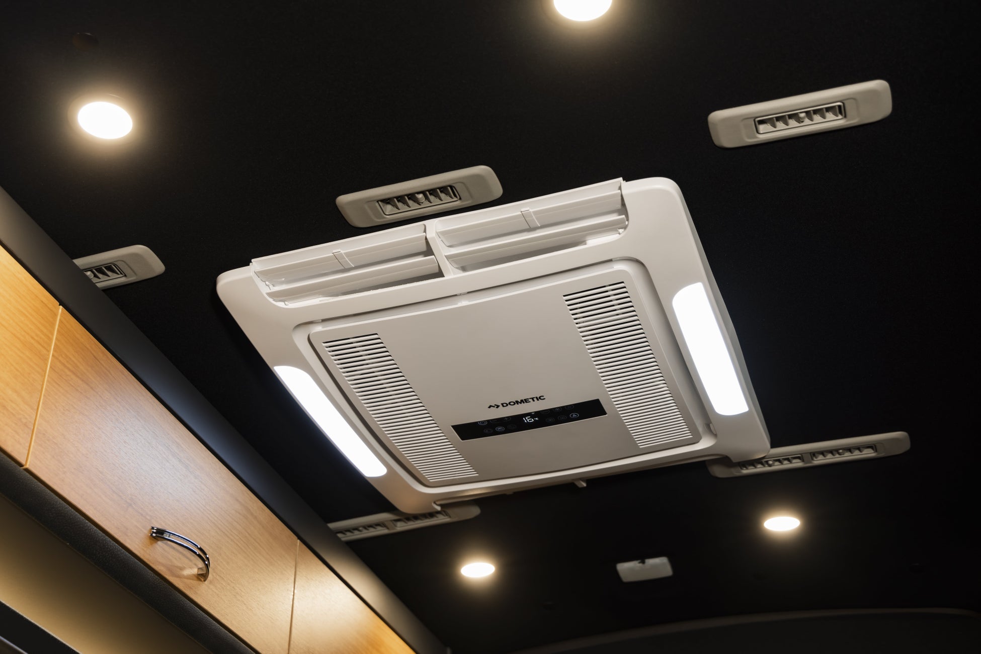 例を挙げるとキャンプや旅行などのクルマ旅をはじめ、旅館やホテルなどが利用しにくいペットとの旅行、そして災害時などの有事の際の避難用シェルターとして等です。そんな中キャンピングカーの装備品として重要視されているのが「エアコン(クーラー)」の有無です。Cabelliaは、標準装備としてルーフエアコンを装備しています。