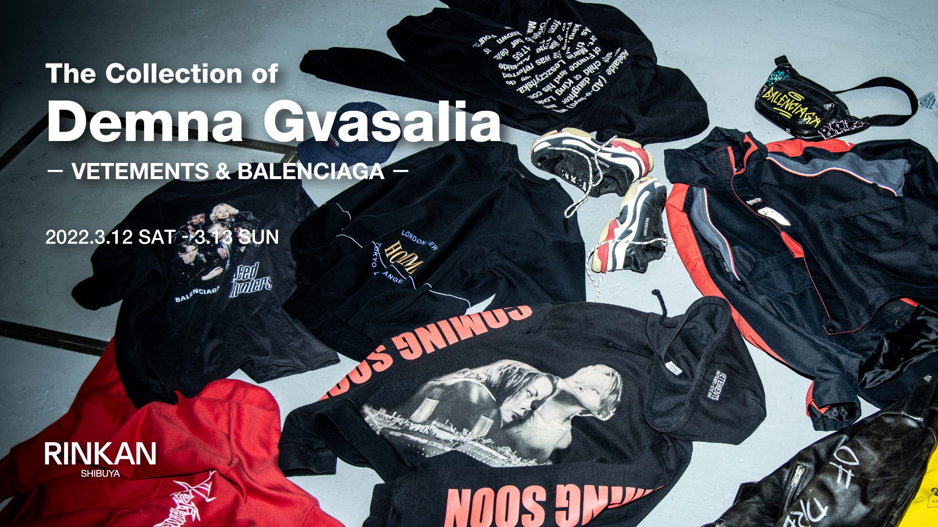 ストリートブランドやデザイナーズブランドの買取・販売を行うセレクトショップ「RINKAN SHIBUYA」は、2022年3月12日(土)と3月13日(日)の二日間、デザイナーのデムナ・ヴァザリアが手掛けたVETEMENTSやBALENCIAGAの名作を展示・販売するイベント「The Collection of Demna Gvasalia -VETEMENTS & BALENCIAGA-」を期間限定で開催いたします。