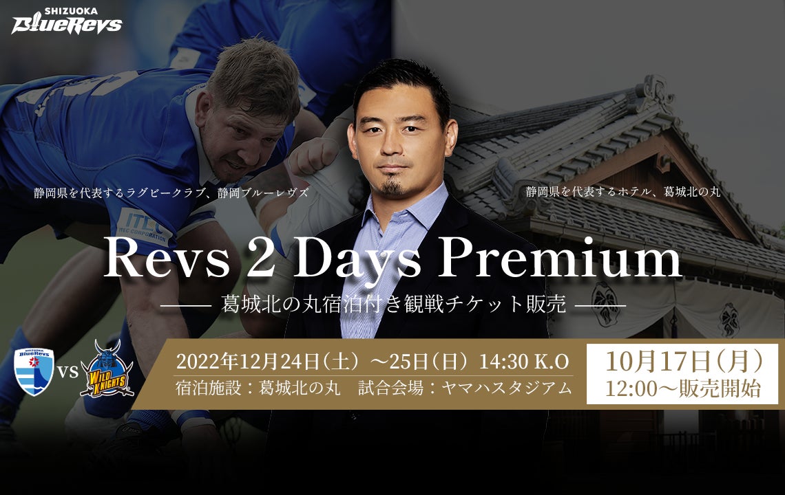 静岡ブルーレヴズは “NTT JAPAN RUGBY LEAGUE ONE 2022-23” ホスト開幕戦の企画チケットとして、「Revs 2Days Premium」葛城北の丸宿泊付き観戦チケットを発売しますのでお知らせいたします。