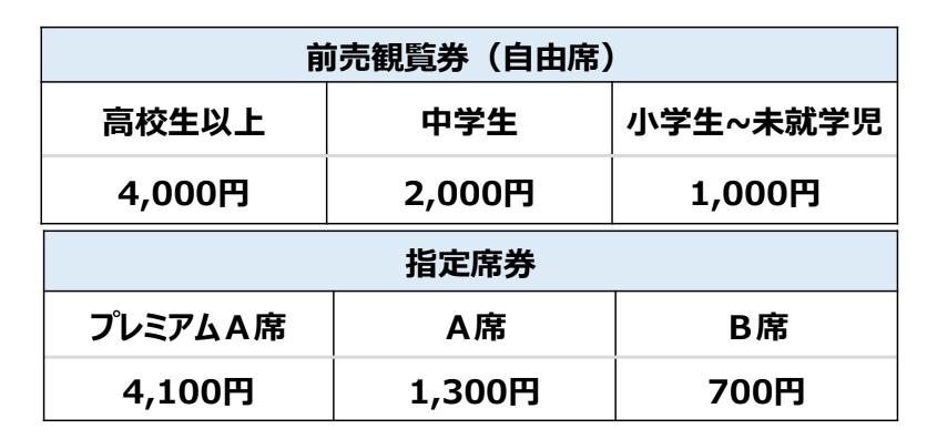 ※指定席券は自由席観覧券のオプションとしてご利用いただけます。