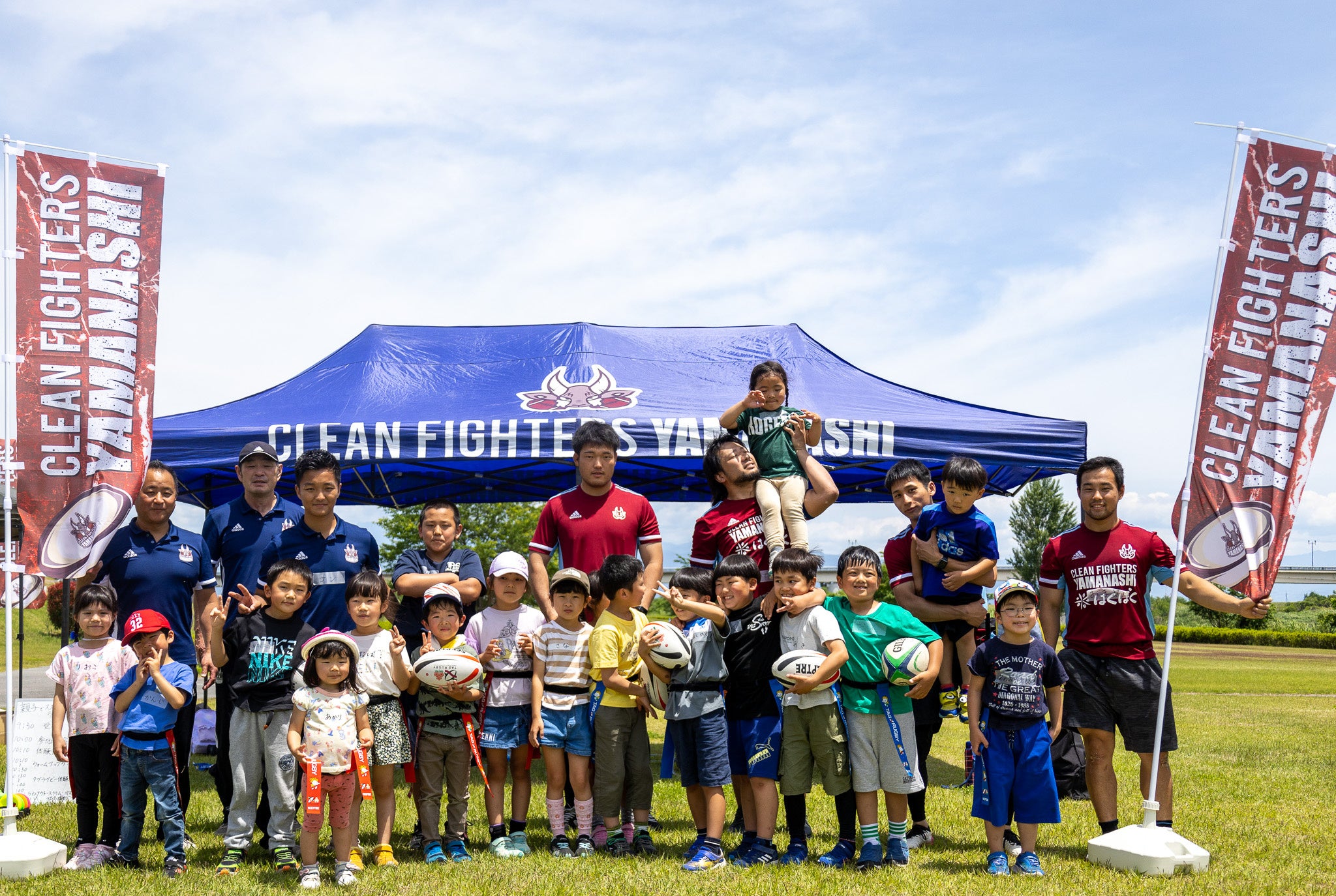 山梨県を拠点とする社会人ラグビーチーム、一般社団法人クリーンファイターズ山梨(本部所在地:山梨県甲府市、代表理事:山本正卓、以下CF山梨)は2023年5月27日、山梨県南巨摩郡富士川町にある富士川親水公園にて、「親子で楽しむスポーツ&ラグビー体験会」を実施しました。