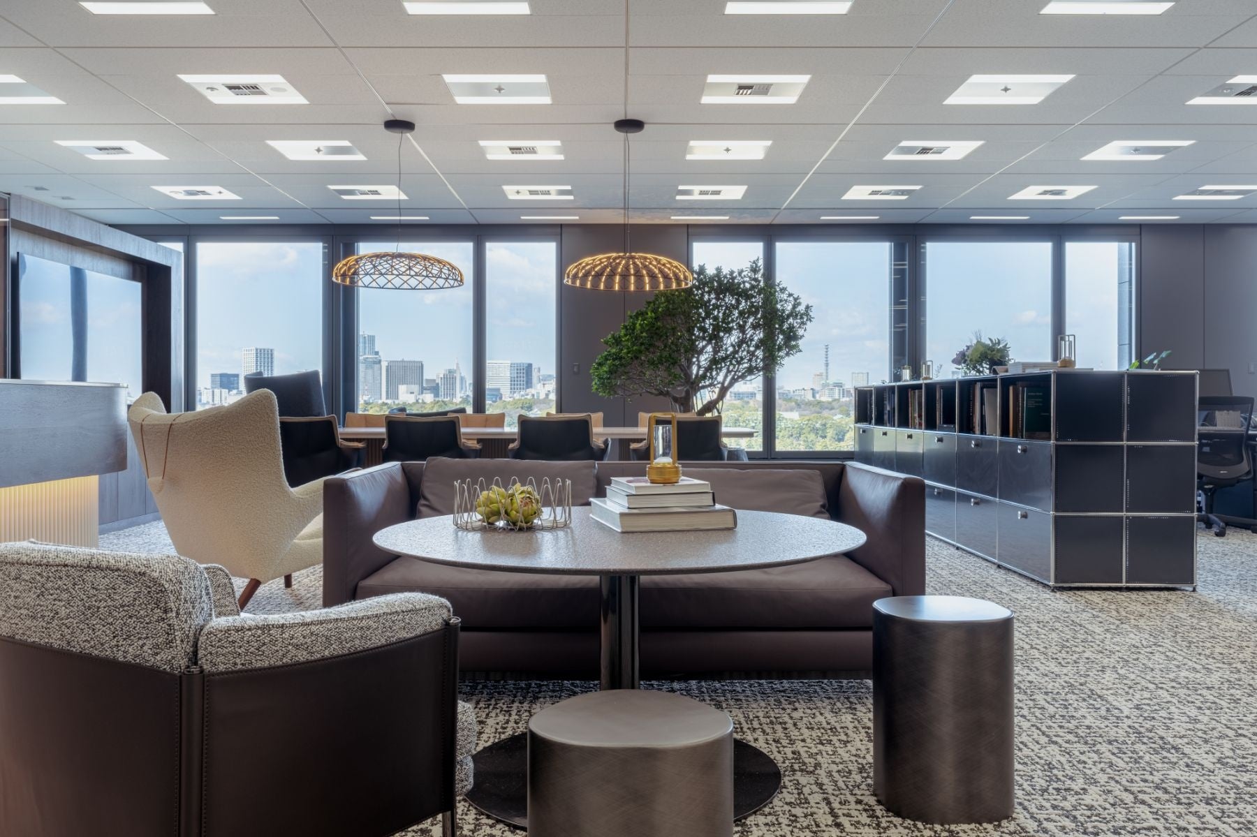 リブラスタイルによる内装デザインが映えるラウンジスペースには、こだわりのソファやテーブルを設え、訪れる人々との新しい出会いや交流を創出する場を実現しました。
