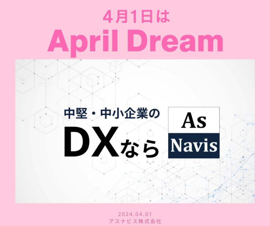 当社は、4月1日を夢を発信する日にしようとするApril Dreamに賛同しています。 このプレスリリースはアスナビスの夢です。