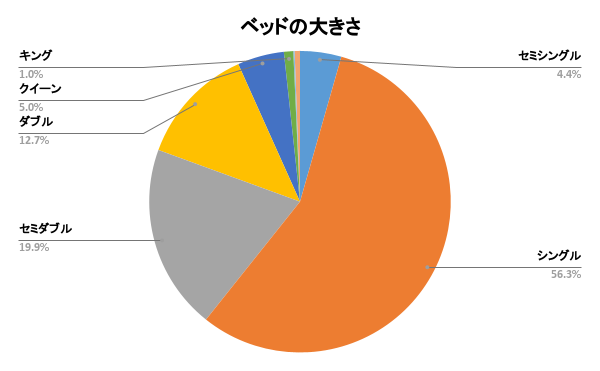 - ベッドの大きさは全体の56.3%がシングルサイズ