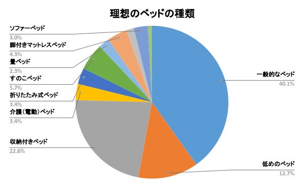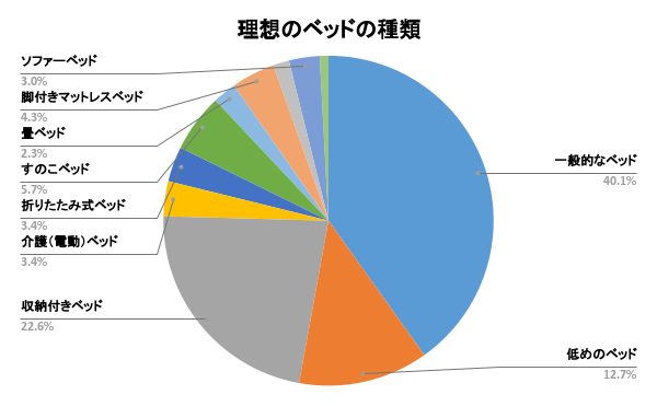 - 理想のベッドは一般的なベッドが40.1%・収納付きベッド22.6%