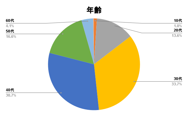 アンケートに答えて頂いた方の年齢は、以下のような割合になりました。