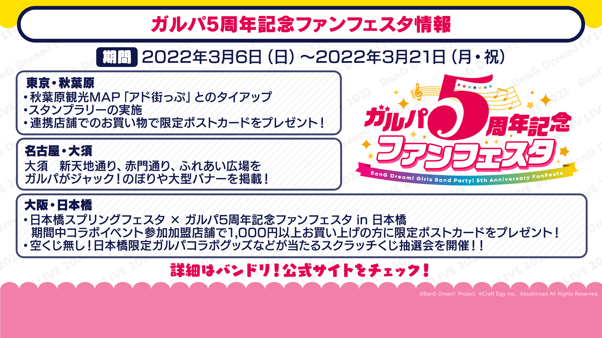 東京、名古屋、大阪で3月6日(日)より開催される「ガルパ5周年記念ファンフェスタ」の各エリアでの企画内容の詳細を発表!