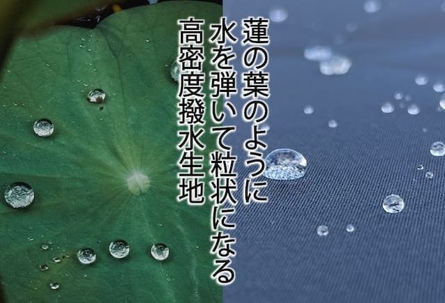 210Tの高密度撥水生地で水をしっかり弾き、丸まって付着しにくく一振りで雨水を落とすことができます。