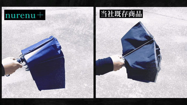 折り畳み傘を綺麗に生地を揃えて畳もうとすると早くても数十秒はかかるところをnurenu+であればクルッと一瞬で畳むことが可能!