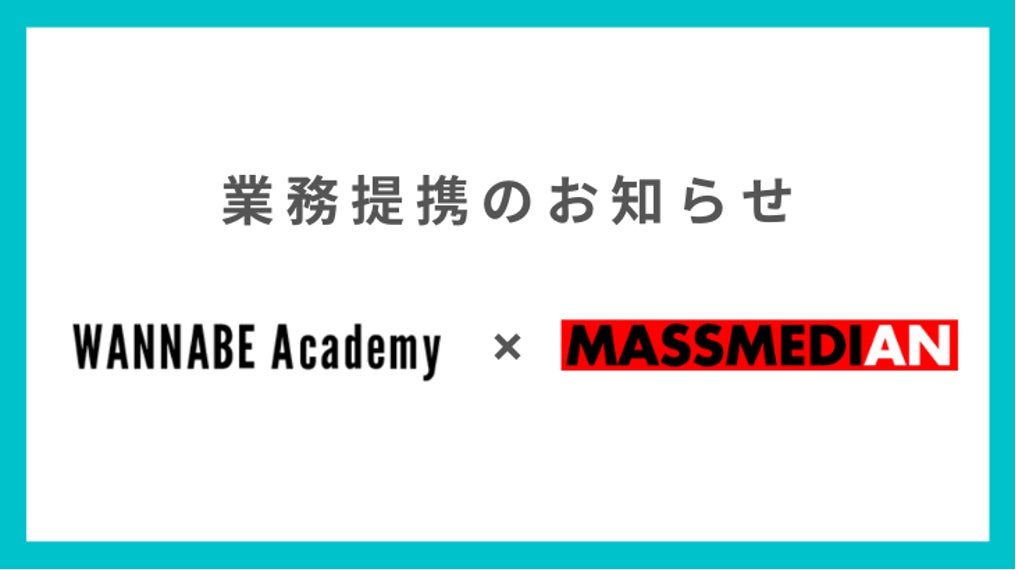 実務経験ができる唯一のWebマーケティングスクール※1、ワナビーアカデミーを運営する株式会社Shareway(東京都杉並区:代表取締役 森田吏)のグループ会社で、ワナビーアカデミー卒業生のキャリアを支援する株式会社wannabe(東京都杉並区:代表取締役 森田吏)はマーケティング職種に特化した転職支援を行う株式会社マスメディアン(東京都港区:代表取締役 東彦弥)と2022年7月5日に業務提携いたしました。