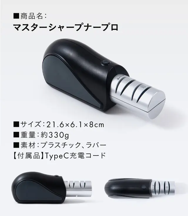 【マスターシャープナープロ】は本体の溝に刃を通すだけで切れ味が復活する電動式シャープナーです。