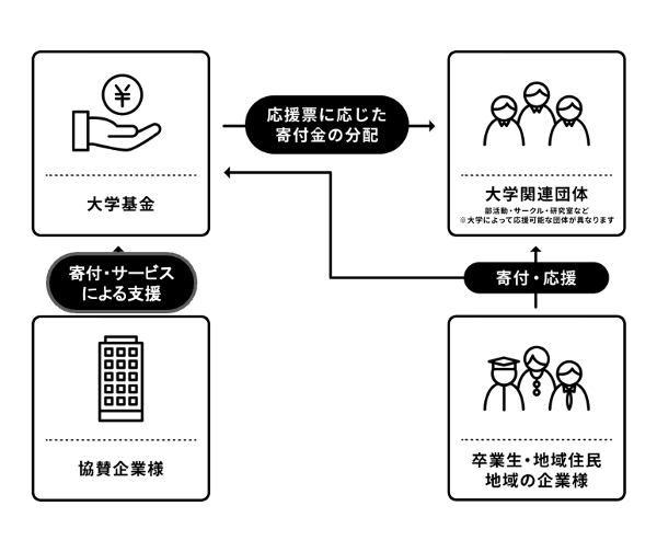 下記のページより頂いたご支援は、大学基金への寄付等に充てさせていただきます。