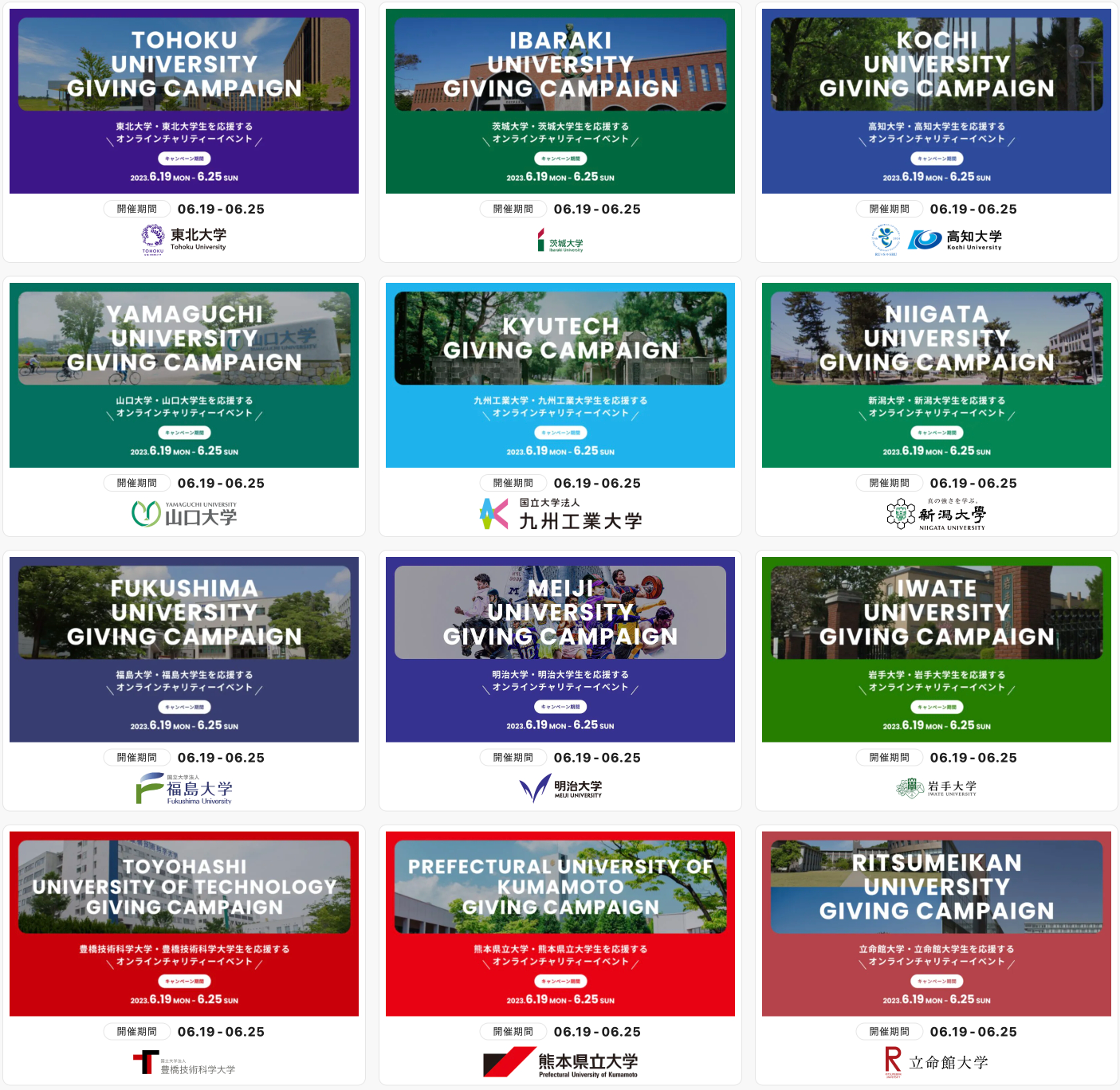【全国12大学にて同時開催】大学・大学生の活動を支援するオンラインチャリティイベント「Giving Campaign 2023」が本日より開幕
