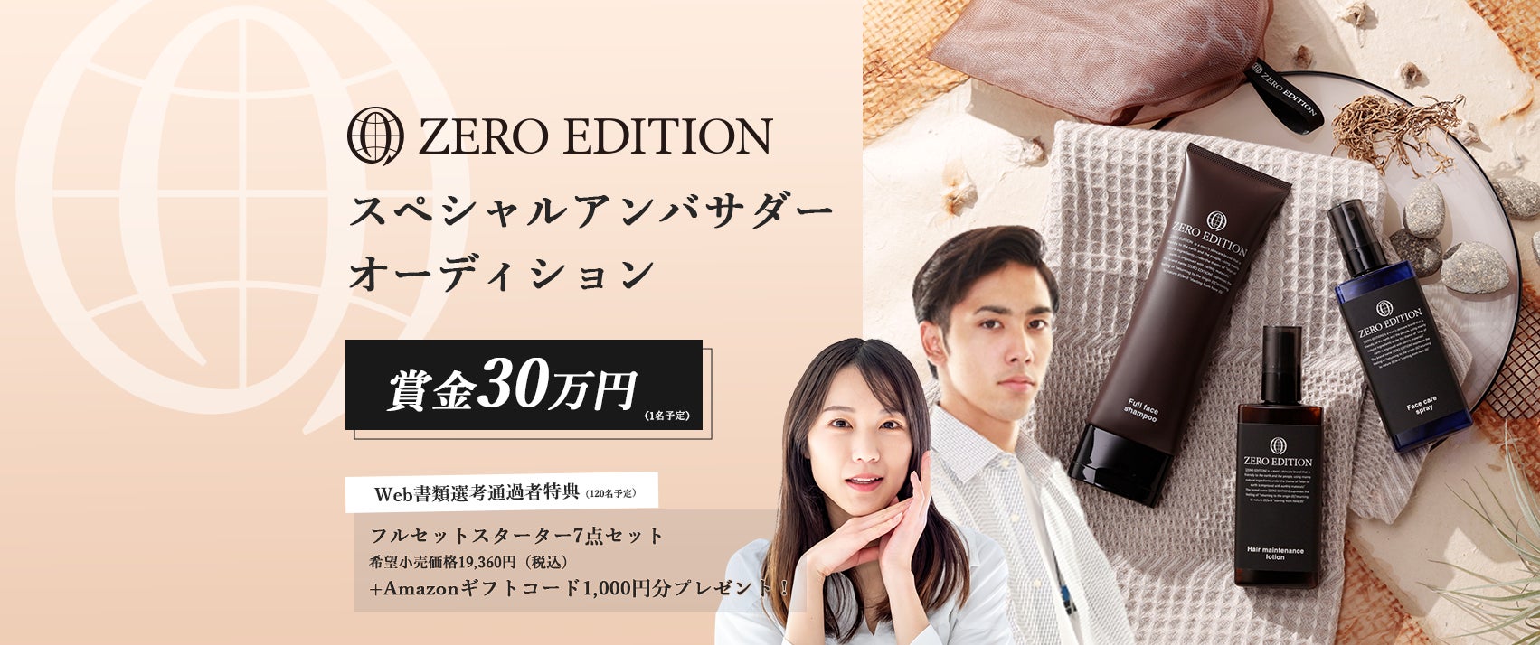 株式会社くらし企画 (本社:東京都江東区、代表取締役:三重野 豊)は、3月14日にローンチしたメンズコスメブランド『ZERO EDITION』のスペシャルアンバサダーのオーディションを開催中!ブランドポリシー、商品コンセプト、SDGSなど『ZERO EDITION』の取り組みに賛同し協力して頂けるスペシャルアンバサダーを大募集します。