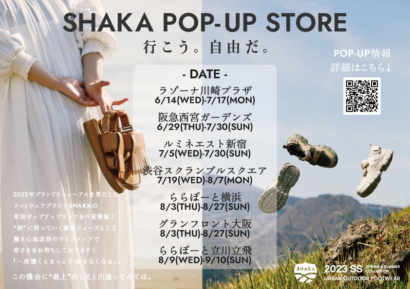 快適な旅を足元からサポートするフットウェアブランド「SHAKA」が23SSシーズン全ラインナップを揃えたPOP UP STOREを店舗拡大して7箇所で開催します。