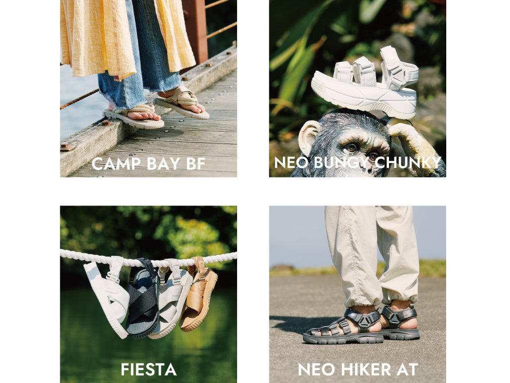人気のスニサン(スニーカーサンダル)タイプや「シャカ」史上最高の軽量性とクッション性を誇るEXソールを搭載したモデルなどバリエーション豊かに展開。