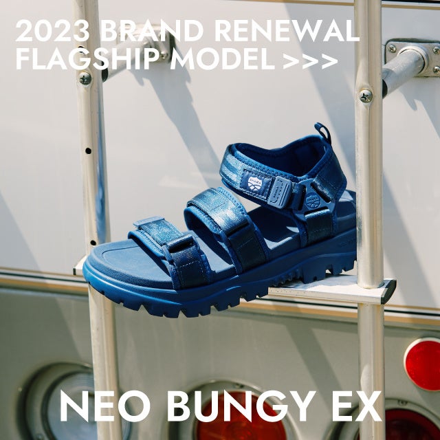 甲とアンクル、3箇所で調節できてフィット抜群のNEO BUNGY。SHAKAを代表するこのモデルに、長時間履いても疲れにくい軽量EXソールを採用した新型が登場。EXシリーズはストラップ裏のネオプレン素材メッシュに変えることで、速乾性を向上させました。