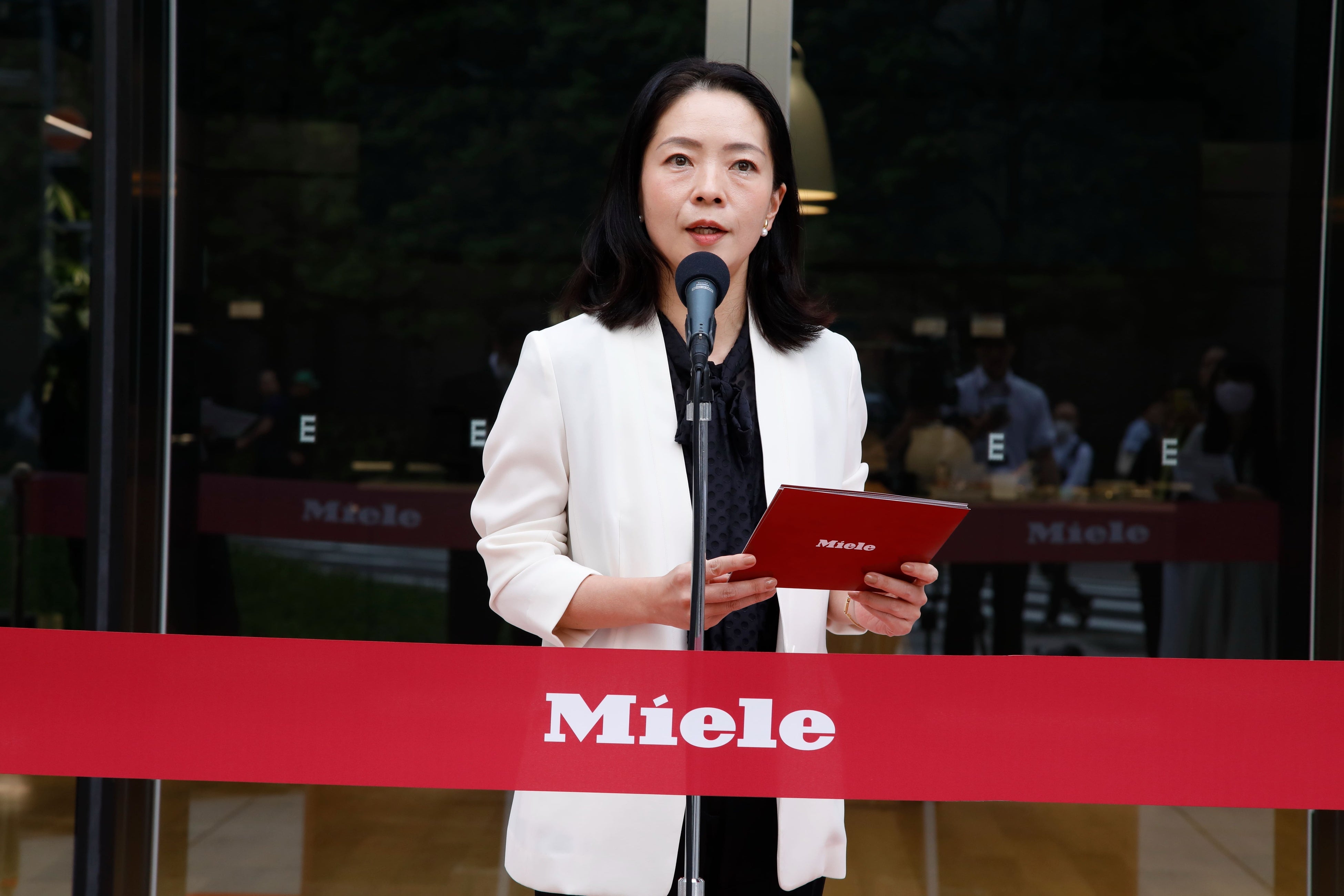 ミーレ・ジャパン株式会社代表取締役社長 冨田晶子は、Miele ブランドについて紹介した後、「Miele Experience Center 名古屋」オープンの背景や、日本の各エリアに直営店を展開していく重要性について説明しました。冨田氏は、「伝統的に製造業が盛んで世界に誇るメーカーを輩出しているものづくりの街、名古屋で、Mieleの直営店をオープンすることは私たちの願いでした。クラフツマンシップから生まれたMiele製品の魅力をより多くの方にお届けできることをうれしく思います」と名古屋店への期待を語りました。さらに、今回東海エリア初となる名古屋に直営店を展開するにあたり、「お客様がMiele製品を実際に試して、暮らしの中に取り入れることをイメージいただける直営店は、Mieleとお客様との最重要接点と考え、この先も日本中でより多くの方にMiele製品を体験していただける場を増やしていきたい」と今後も日本の各エリアへ直営店を広げていく重要性について明かしました。