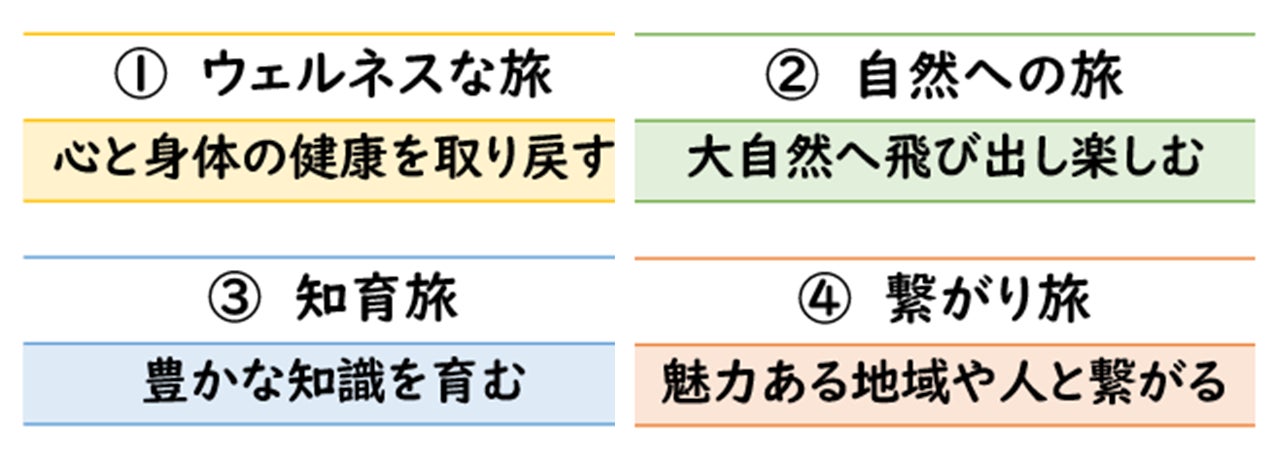 当協議会では、北海道駒ケ岳周辺の滞在テーマについて、コロナ期を境に変容した旅行者ニーズを参考に以下の「テーマ性」を重視し、3町への周遊を促しています。