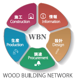 当社では、木材の調達を行う木材事業部や、木造建築物の施工を行う木構造事業部、グループ会社として構造設計や積算、木材加工などを行うナイスプレカット㈱など、建築物の木造化・木質化を推進する様々な機能を有しています。これらを生かし、「ウッドビルディングネットワーク」という概念の下それぞれの事業主様や案件に応じて必要な機能を補完することで、木造建設をサポートしています。