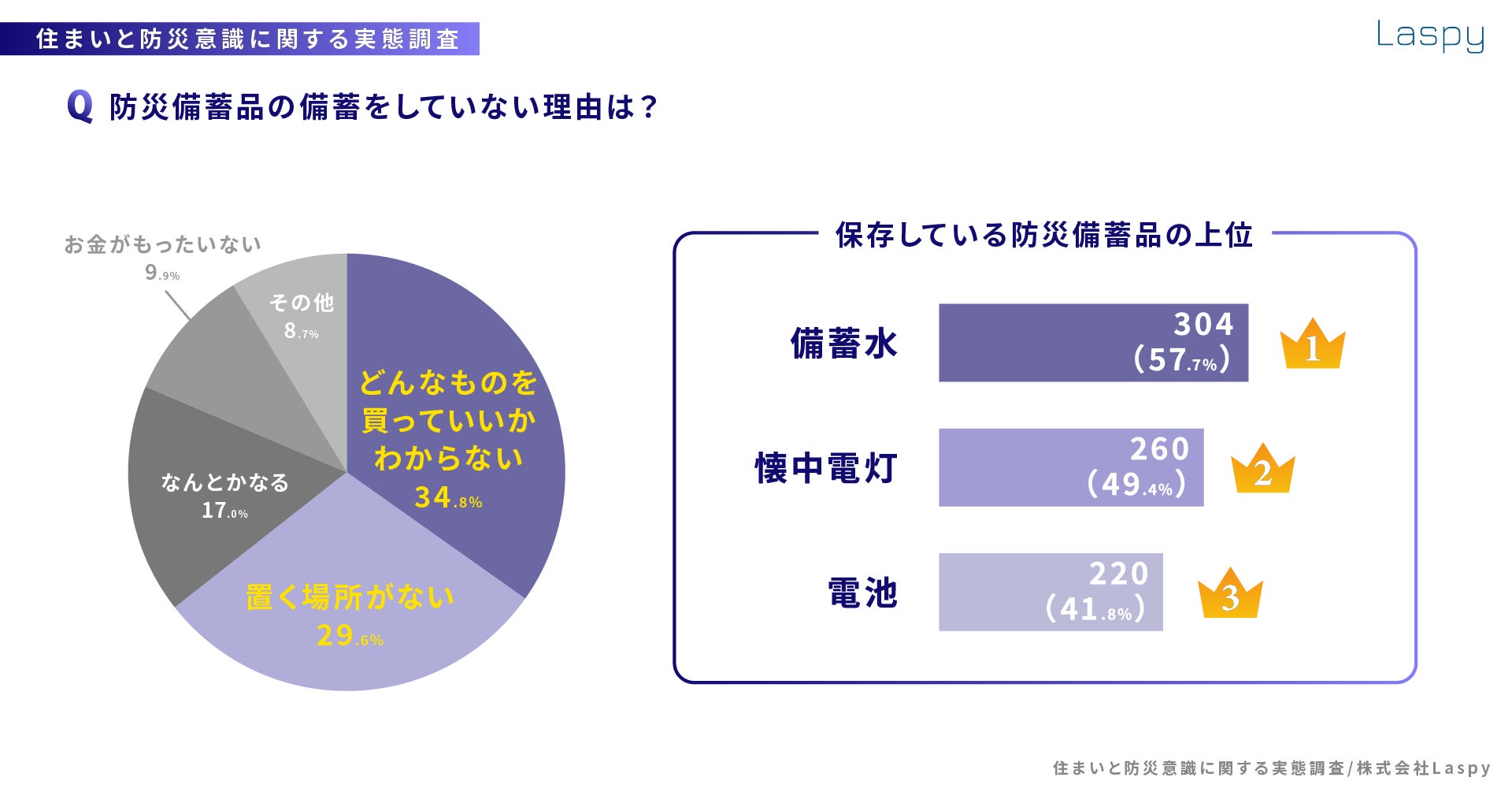 【住まいと防災意識に関するアンケート調査】4人に1人が自宅に備蓄品なし 備蓄していない理由の1位「どんな物を買っていいか分からない」が最多の34.8%