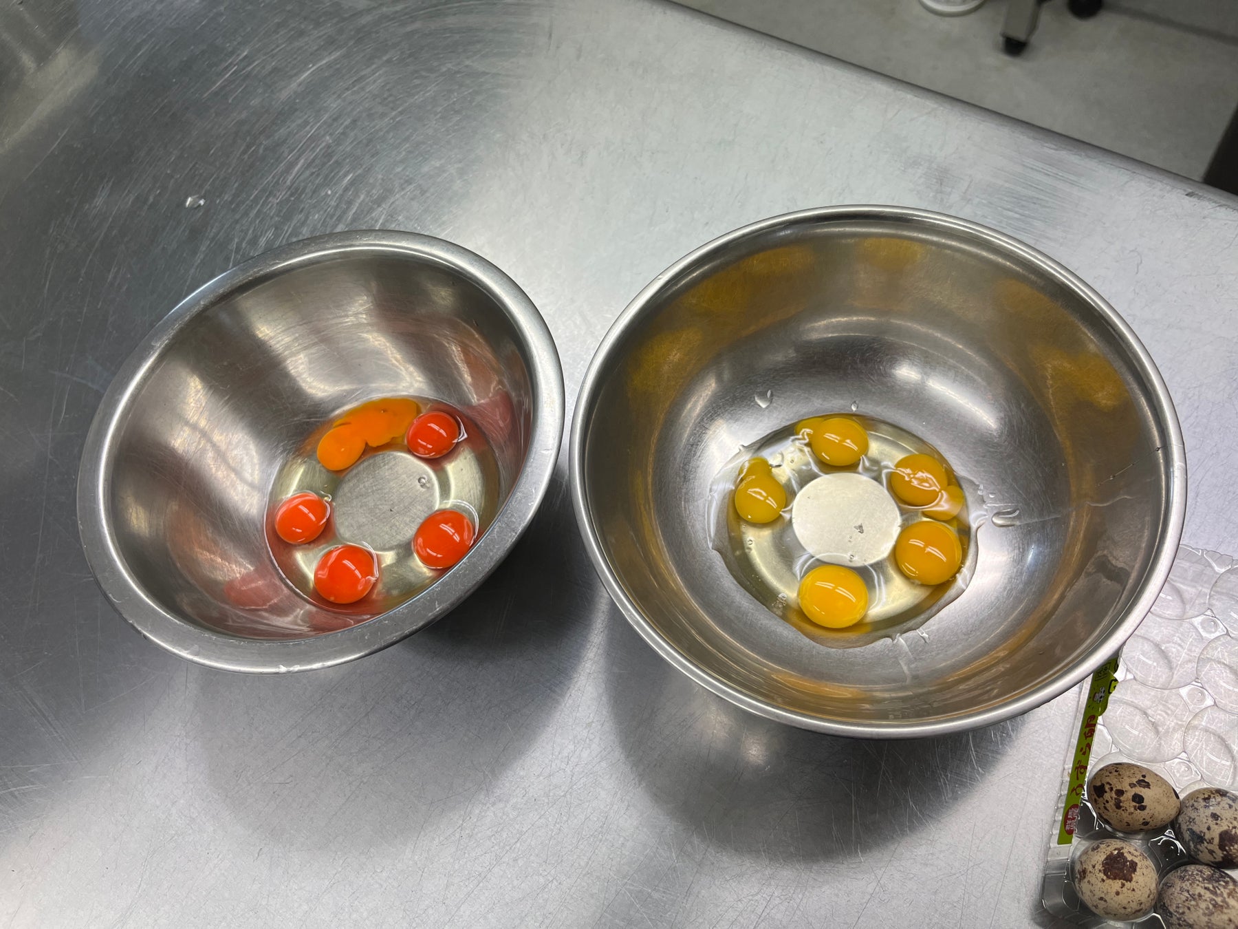 ※左側:「極」、右側:通常のうずら卵