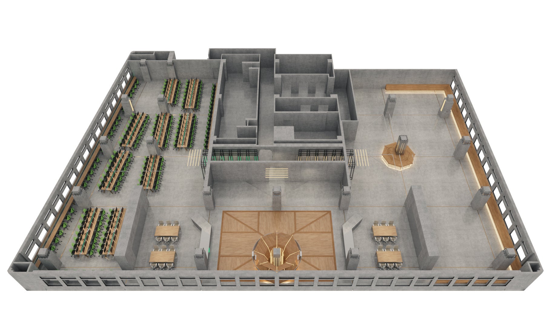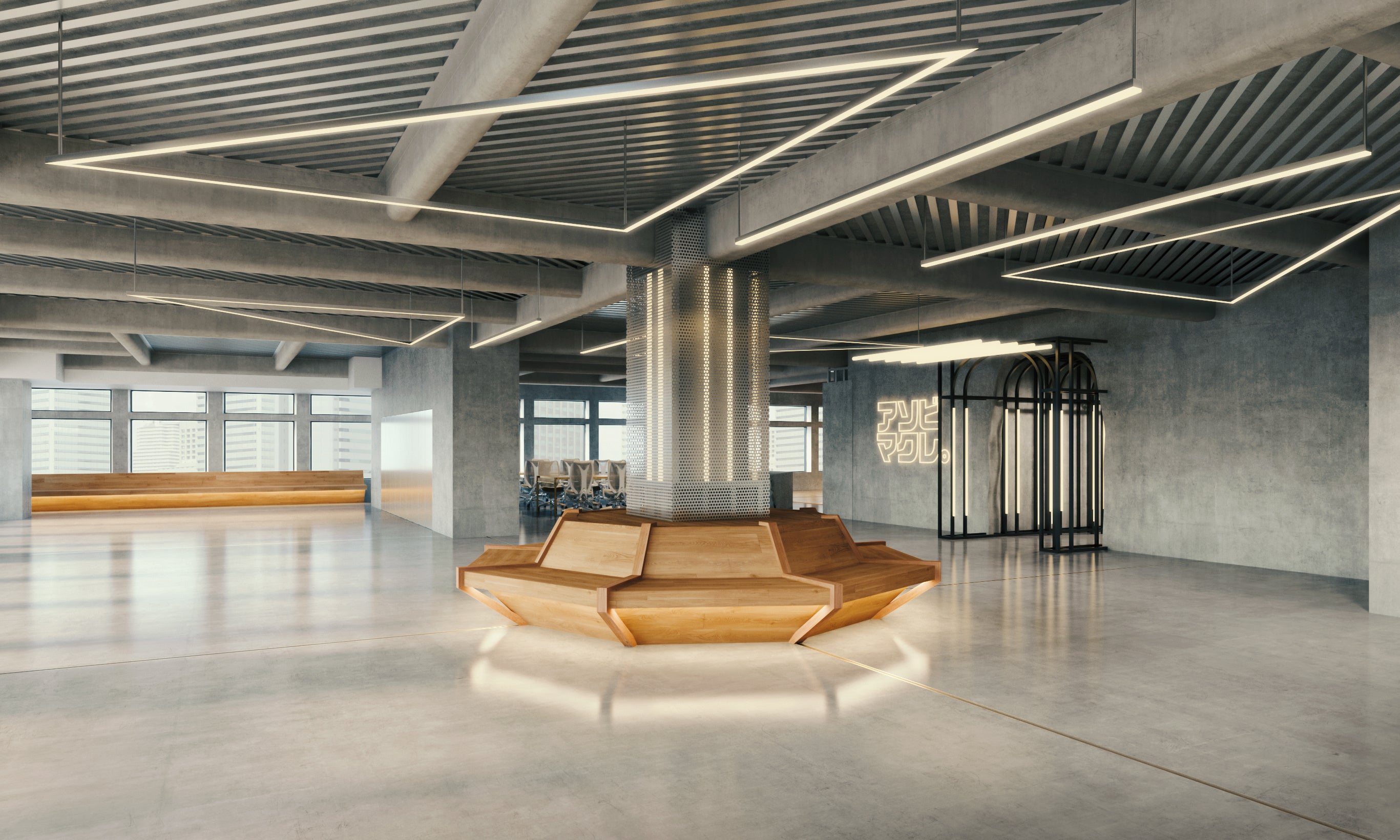 eスポーツ学習スペースと中央高等学院渋谷原宿校の学習スペースを結ぶ未来を予感させる廊下