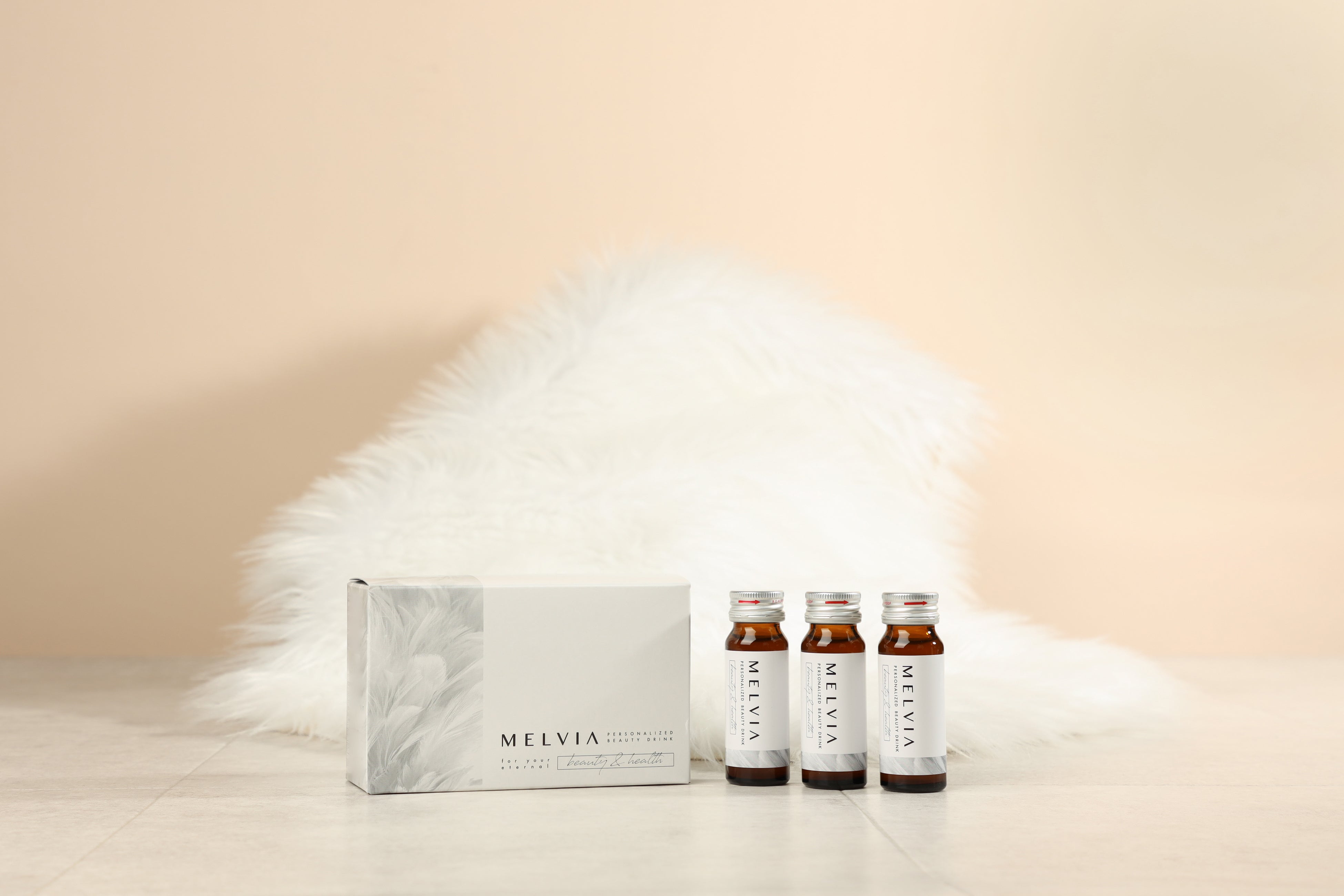 MELVIAは、特許製法ナノ型乳酸菌を約1,000億個ベース配合し、加える美容成分は皮膚科専門医と共同開発した診断テスト結果に基づきパーソナライズ処方することで人それぞれの悩みに的確にアプローチし腸活×美肌活を可能にした飲む美容液ブランドです。