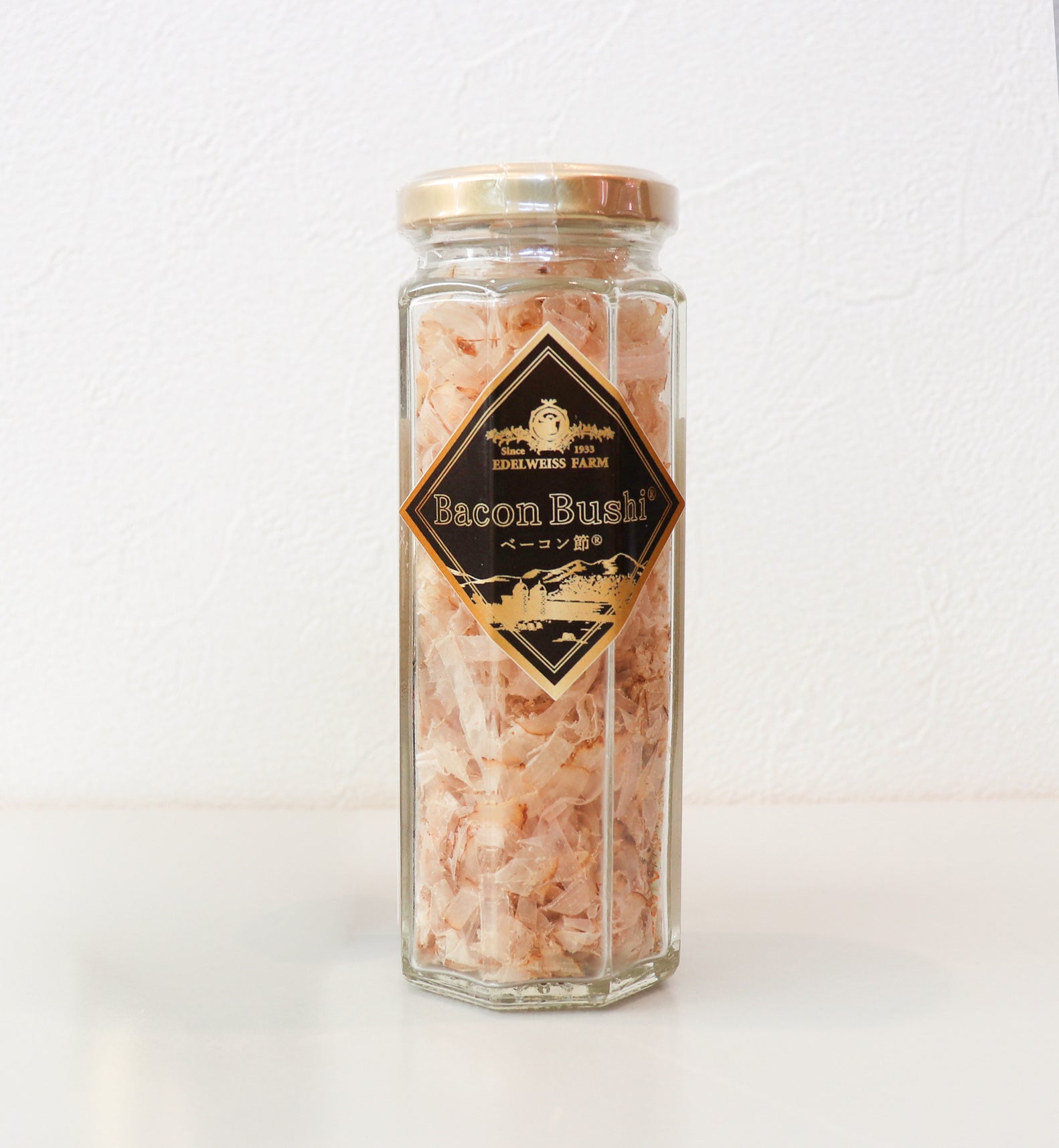 はじめ見たときには、鰹節にしか見えませんが、これがベーコンだと知り1度目の驚きがあります。次に蓋を開けると立ち上がる良い香りにそそられ、食べてみると凝縮された旨味と美味しさに、一度食べると止まらなくなりました。そして、世界初のベーコン節だと知り、驚きとともに商品化するまでのご苦労を感じました。北海道からこのような商品が誕生したことを誇りにも思います!