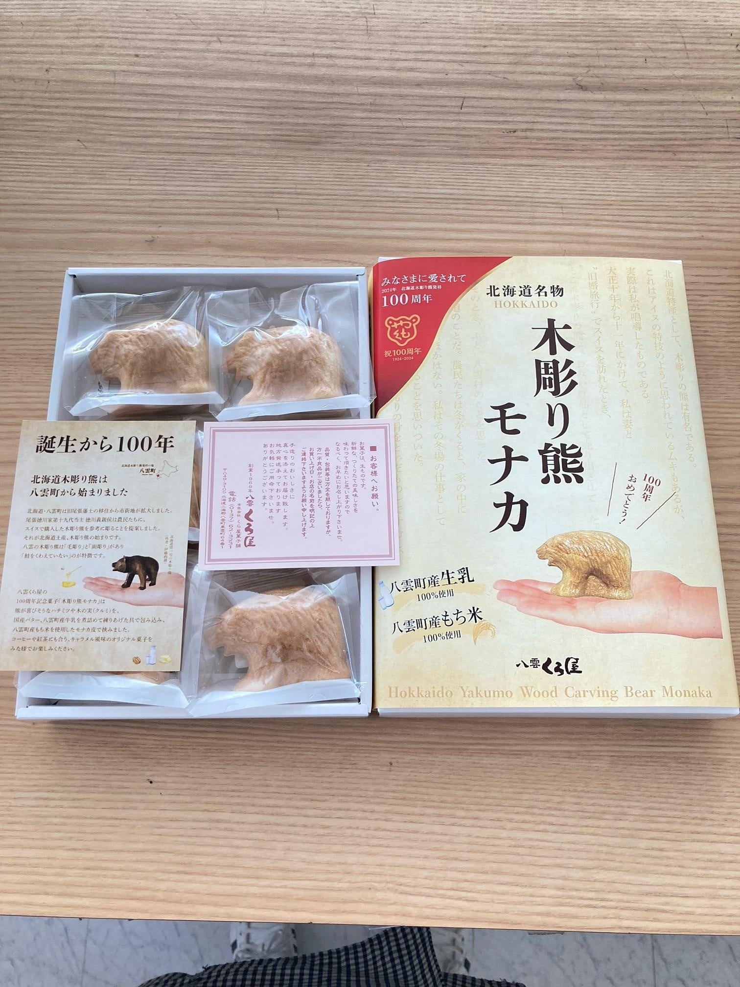 北海道らしさ満点!箱を開けた時のインパクトもありました。熊の最中もとても可愛いらしいです。贈り物に、自分用にリピートしたいお土産。八雲産の地元原材料への配慮が感じられる商品で、他ではなかなかない胡桃ハニーの餡は甘さも程よく、胡桃の食感も楽しめて幅広い方に好まれるのではと。グルテンフリーでアレルギーの方も含めて多くの方に味わってもらえるところも評価したいです!