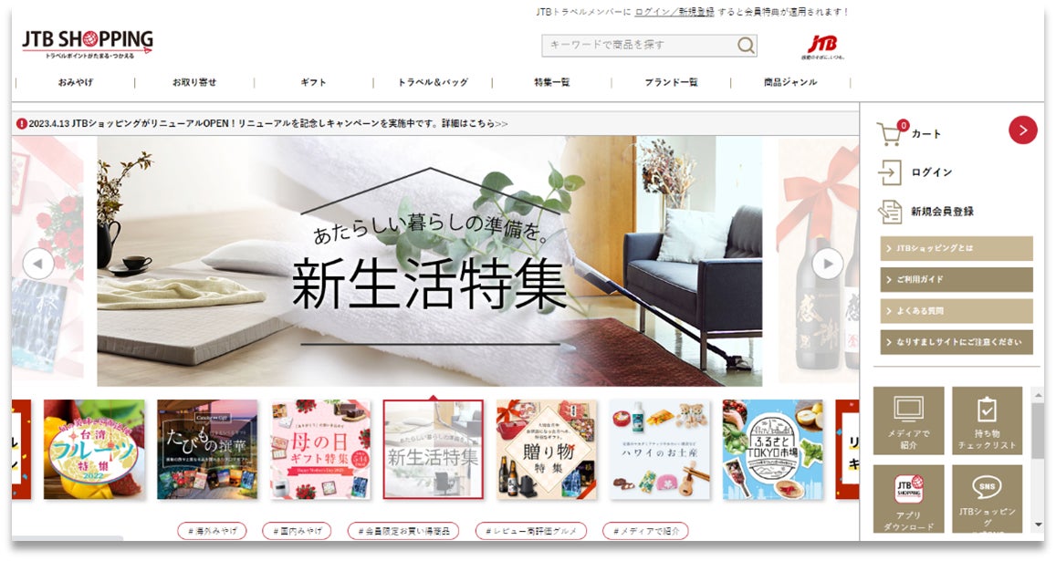 JTBショッピングサイト リニューアルオープンのお知らせ