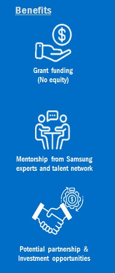 本プログラムはSRが2~5年先の自社の将来に備えるため、パートナー企業様の革新的な技術を発掘し協業を行うことで、将来のサムスン製品への搭載を見据えた研究開発につなげ、全く新しい価値を創造することを目的としています。
