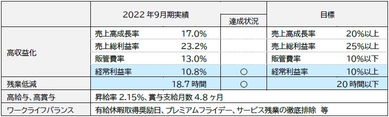 経営方針で定める各目標についての取組みは以下のとおりです。引き続き全ての目標の達成に向けて取り組んでまいります。
