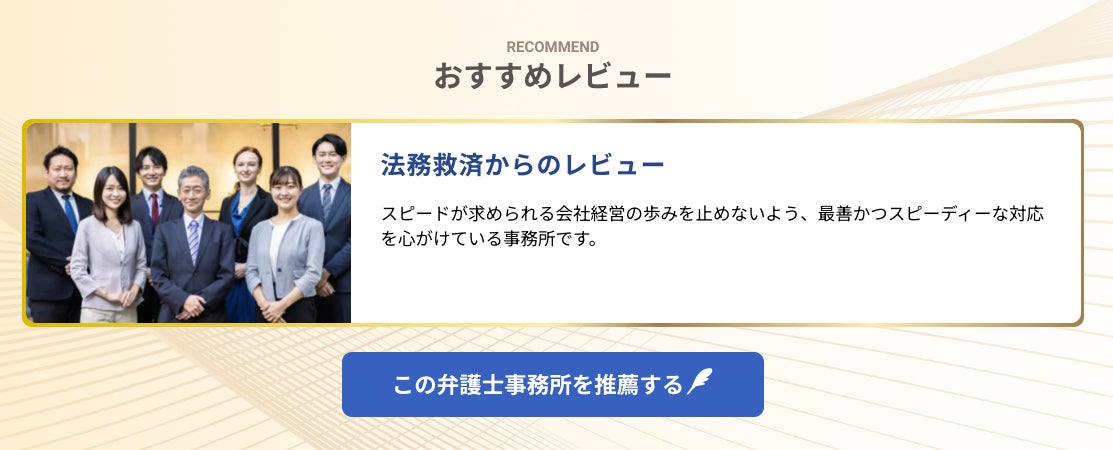 「法務急済」には、掲載事務所同士が推薦メッセージを投稿できる機能が備わっています。そのため、各事務所は他事務所からの推薦により信頼度を向上させ、利用者も信頼できる優良な事務所を見つけることが可能です。
