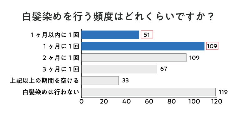 - 白髪染めの頻度は1か月以内に1回以上が約45%